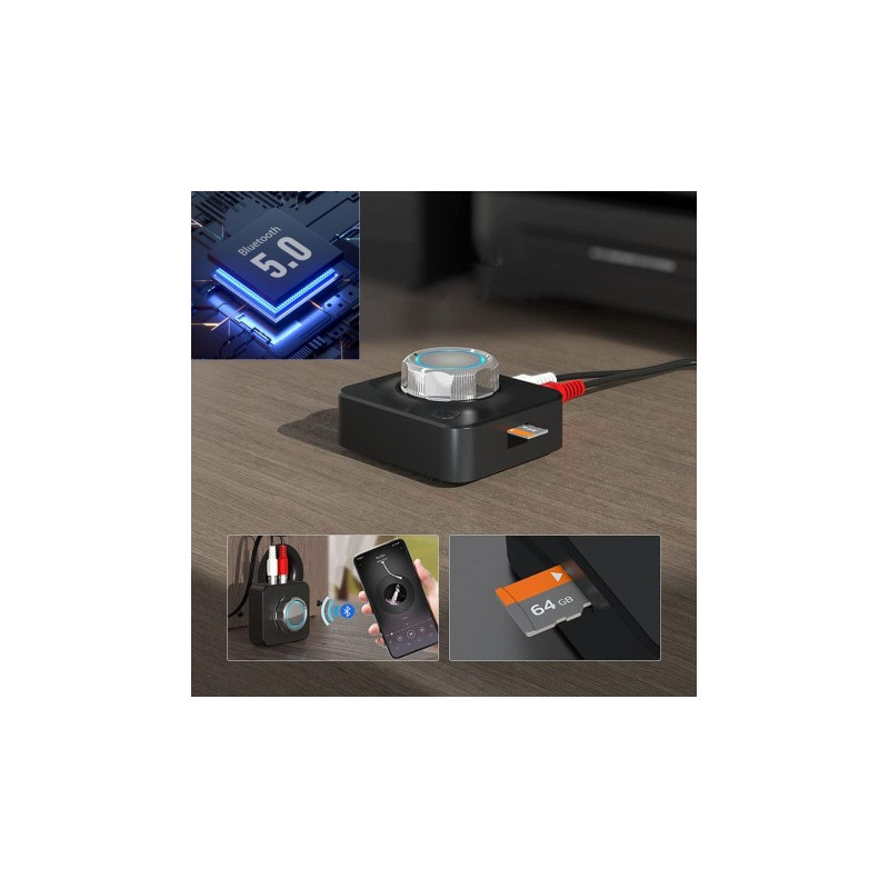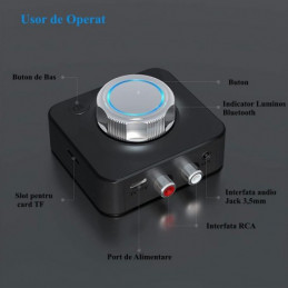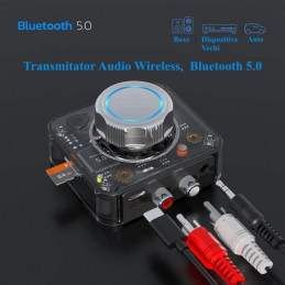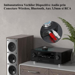 Dispozitiv Bluetooth 5.0 Receptor / Transmitator Audio cu Sunet 3D Stereo Wireless, ce are Adaptor de card TF, Conector RCA,