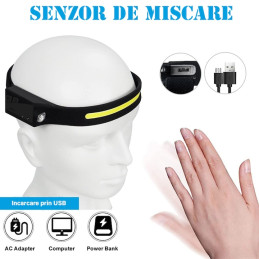 Lanterna de cap cu acumulator intern, 350 lumeni, camping, pescuit, service auto, incarcare USB Type C, waterproof, L99