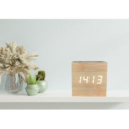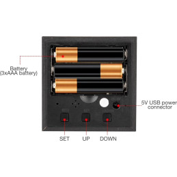 Afiseaza ora, data si temperatura si este prevazut cu functie de ceas cu alarma. Designul modern adauga un plus de stil dormitorului, sufrageriei sau biroului. Poate fi conectat prin USB sau alimentat cu 3 baterii AAA.