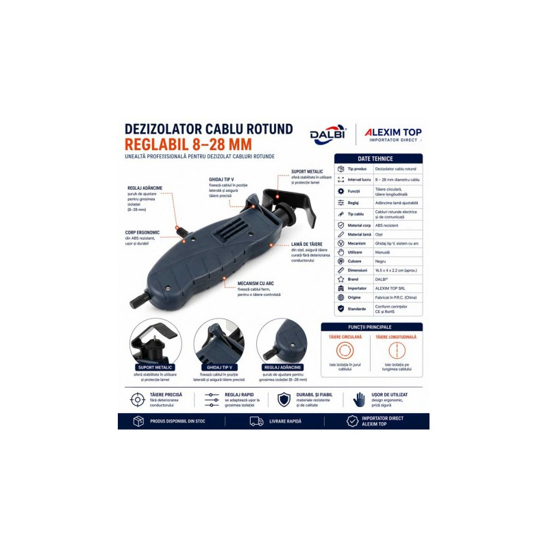 Dezizolator cablu rotund reglabil 8-28mm DALBI este o unealta practica,
