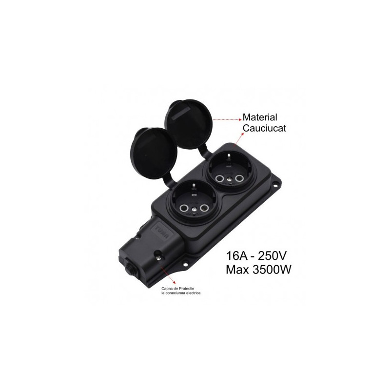 CAP DE PRELUNGITOR CU 2 PRIZE SI CAPAC DIN CAUCIUC, 3500W