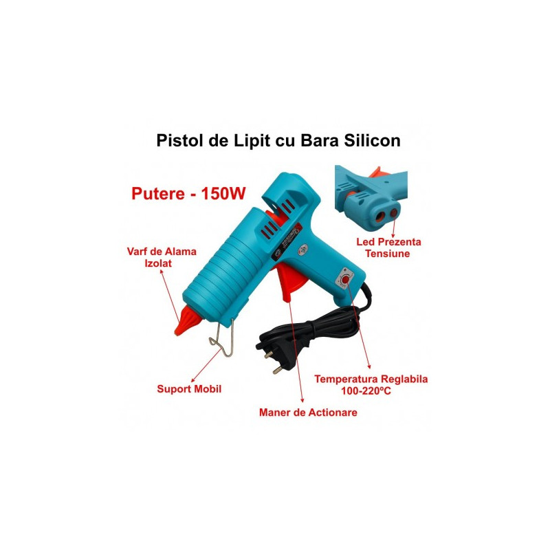 Pistol de Lipit 150W cu Temperatura Reglabila 100-220 Grade cu Bara Silicon 11mm / HJ019