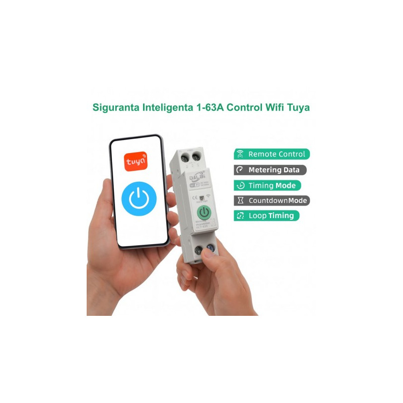 Siguranta Inteligenta Wi-fi, 1-63A, 1P+N Monitorizare Energie, Protectie Subtensiune, Supratensiune - TUYA SigMesh / ZigBee