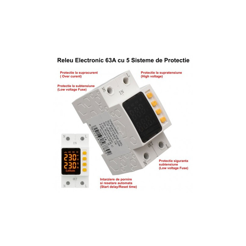 Releu Electronic de Protectie reglabil 1-63A la Supratensiune, Subtensiune si Supracurent Dalbi AVR-63