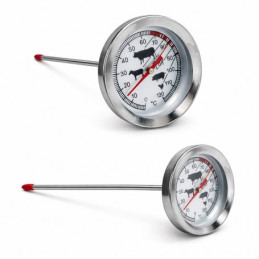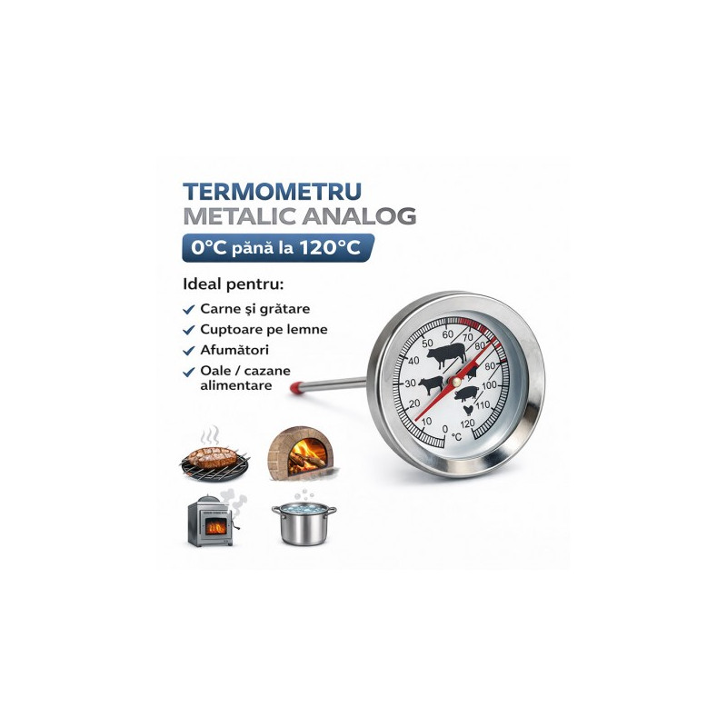 Tija metalică se introduce direct în mediul de măsurare, iar temperatura este indicată imediat pe cadranul analogic,