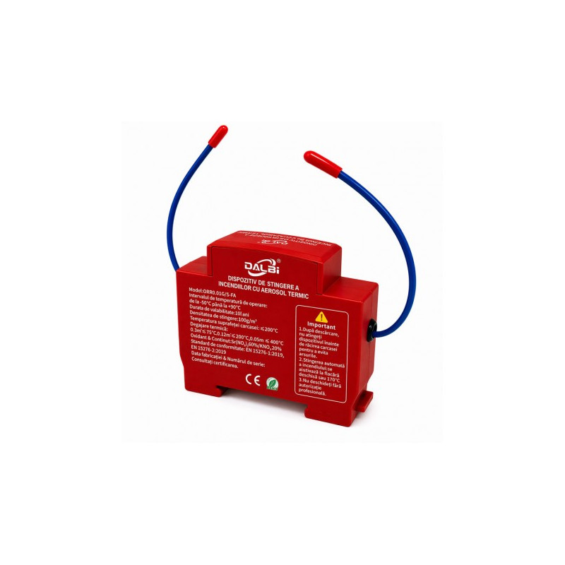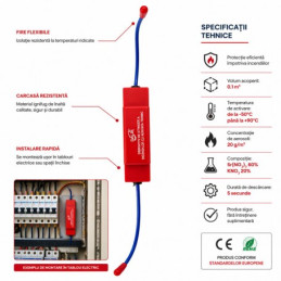 Actioneaza rapid prin dispersie de aerosol, reducand riscul extinderii incendiului in interiorul tabloului electric.