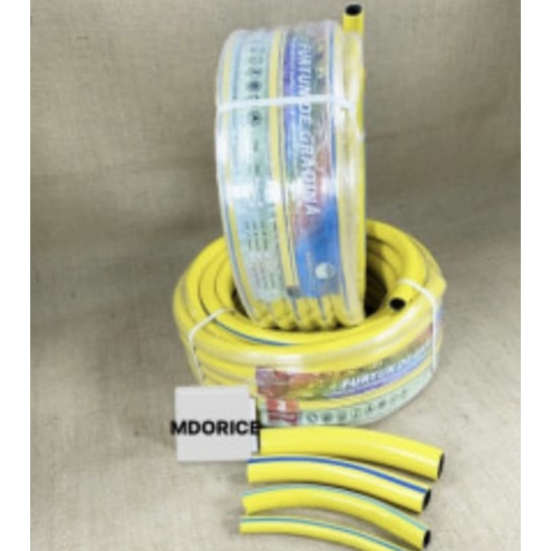 Furtun de gradina de culoare galbena, usor, flexibil si economic, care poate fi utilizat pe diferite suprafete.