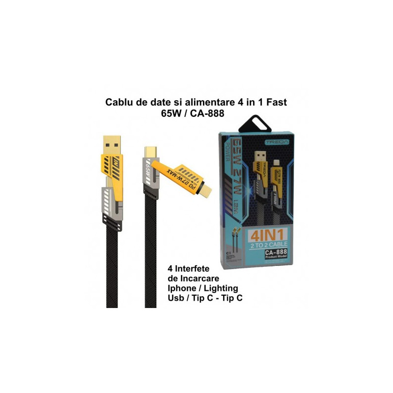 CABLU DE DATE 4 IN 1 SUPER FAST - PD 27W, USB 65W, IPHONE - 1,2M / CA-888