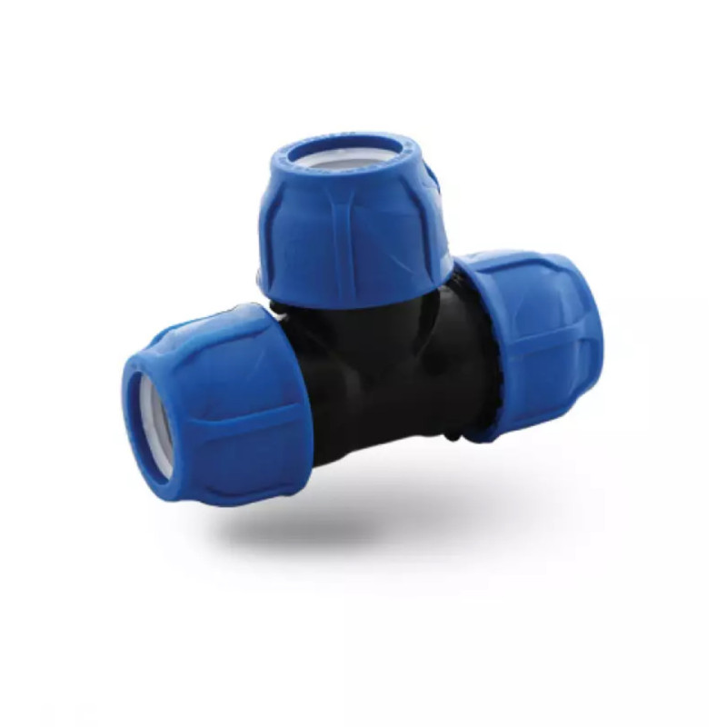 Teu compresiune egal 50 mm x 50 mm x 50 mm Valoarea presiunii: PN 16. Zone de utilizat în: rețele urbane de apă potabilă, sisteme de irigații agricole, sere. Specificații: Fabricat din polipropilenă rezistentă la impact, materie primă de înaltă calitate. Datorită funcției de strângere conică, previne problemele care pot apărea din cauza diferențelor sau ovalitate în țevi. Evita formarea algelor și bacteriilor datorită structurii rezistente la UV (razele ultraviolete).Garnitura este fabricata din cauciuc și oferă etanșeitate la presiune ridicată. Are o suprafață interioară omogenă și neporoasă. Nu conține niciun compus nociv care poate schimba gustul sau mirosul apei. Dimensiunile filetului sunt compatibile cu Standardul ISO 7-1. Este compatibil cu Standardul ISO 17885.